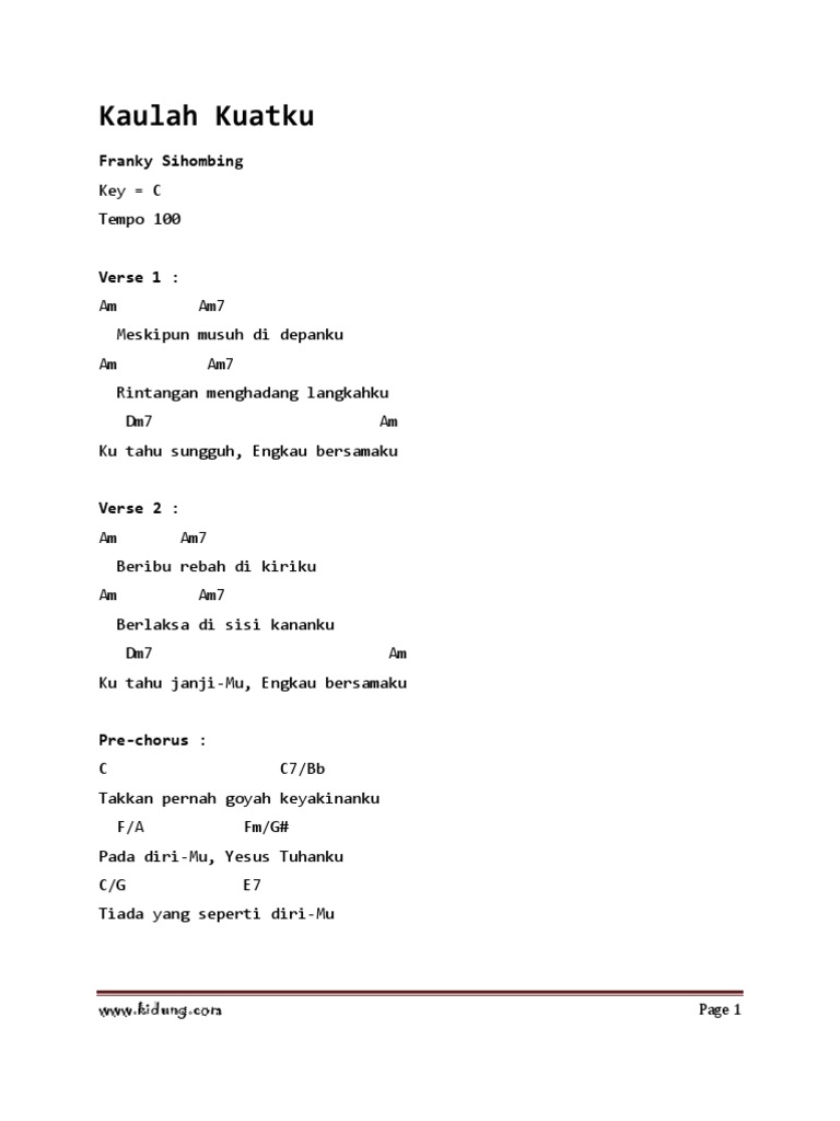 Beranda Lirik Lagu Rohani Indonesia. Robert Lea Sutanto. Chord Aku Percaya Sari Simorangkir Bait.
